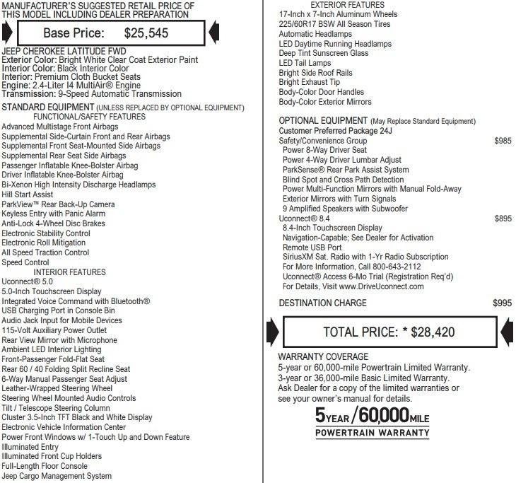 Carfax 1 Owner New Vehicle Trade! Cherokee Latitude, 2.4 I4, FWD, 9 Speed Automatic, Uconnect 8.4, Sirius XM Radio, Rear Park Assist, Blind Spot Monitoring, Power Driver Seat, Leather Wrapped Steering Wheel With Audio Controls, Cruise Control, Rear View Camera, Remote Keyless Entry, Power Windows, Power Locks, Power Mirrors. This vehicle has good tires, is in good condition and is ready for many more miles! Call us today, this vehicle won't last long at this price 573-677-1305! Laura Automotive Group, serving our communities for over 43 years!! We are a family owned dealership committed to providing our customers the best deals backed by outstanding service!