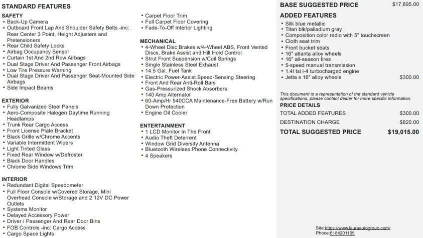 Recent Trade! Jetta 1.4T S Sedan, 1.4L TSI, FWD, 5 Speed Manual, Rear View Camera, Bluetooth® For Phone, Steering Wheel Mounted Audio Controls, Automatic Headlamps, Touchscreen Radio, Remote Keyless Entry, Power Windows, Power Locks, Power Mirrors. This Vehicle has good tires, is in good condition and is ready for many more miles! This Jetta has a clean vehicle history report and does not have any accidents. Call us today, this vehicle won't last long at this price 573-677-1305! Laura Automotive Group, serving our communities for over 43 years!! We are a family owned dealership committed to providing our customers the best deals backed by outstanding service!