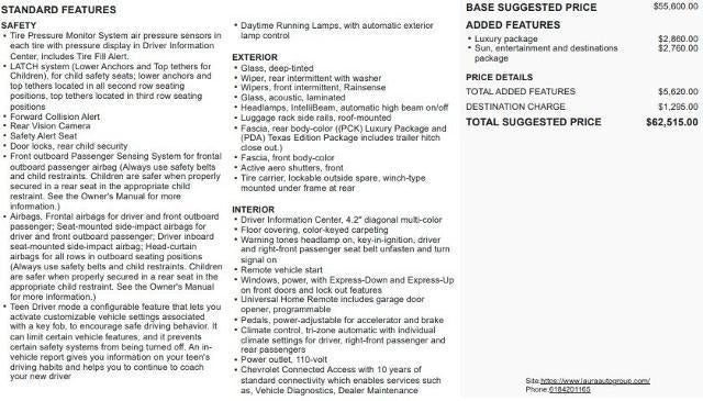 Carfax 1 Owner New Vehicle Trade! Tahoe LT SUV, 5.3 V8, 4WD, 6 Speed Automatic, Power Sunroof, Heated Leather Seats, Rear Park Assist, Remote Start, Rear View Camera, BOSE Premium Audio, Hands Free Liftgate, Tri Zone Automatic Climate Control, Cruise Control, Sirius XM Radio, Remote Keyless Entry, Power Windows, Power Locks, Power Mirrors. This vehicle has good tires, is in good condition and is ready for many more miles! This Tahoe has a clean vehicle history report and does not have any accidents. Call us today, this vehicle won't last long at this price 573-677-1305! Laura Automotive Group, serving our communities for over 43 years!! We are a family owned dealership committed to providing our customers the best deals backed by outstanding service!