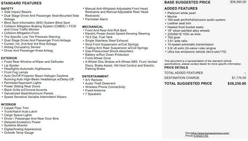 Recent Trade! Odyssey EX-L VAN, 3.5 V6, FWD, 10 Speed Automatic, Heated Leather Seats, Adaptive Cruise Control, Steering Wheel Mounted Audio Controls, Blind Spot monitoring, Rear View Camera, Automatic Headlamps, Power Driver Seat, Remote Keyless Entry, Power Windows, Power Locks, Power Mirrors. This Vehicle has good tires, is in good condition and is ready for many more miles! This Odyssey has a clean vehicle history report and does not have any accidents. Call us today, this vehicle won't last long at this price 573-677-1305! Laura Automotive Group, serving our communities for over 43 years!! We are a family owned dealership committed to providing our customers the best deals backed by outstanding service!