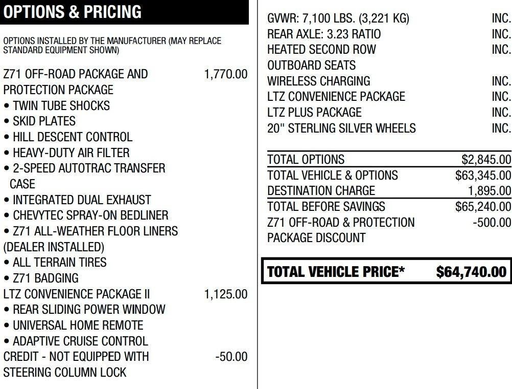 - LTZ models include 20" all-terrain blackwall tires and Chevytec spray-on bedliner