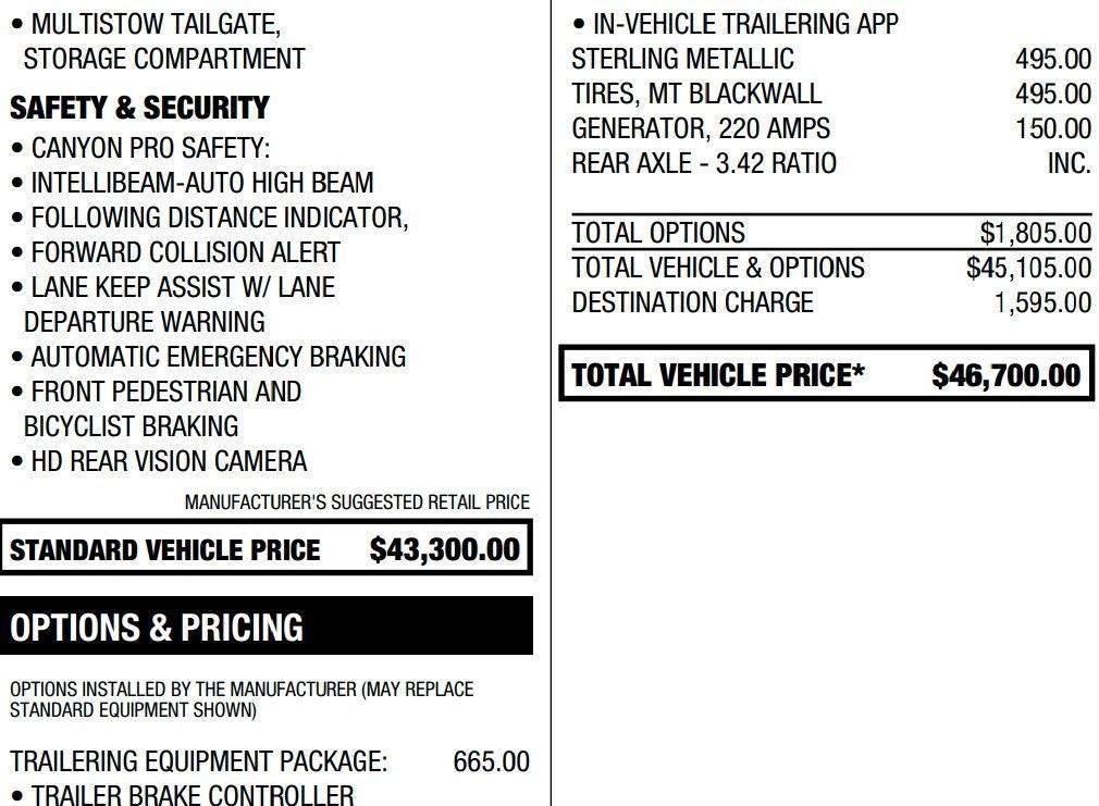 The Manufacturer's Suggested Retail Price excludes tax, title, license, dealer fees and optional equipment. Dealer sets final price.