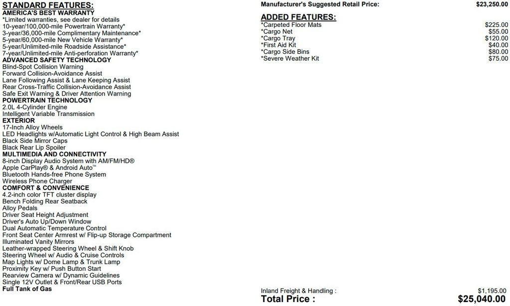 The Manufacturer's Suggested Retail Price excludes tax, title, license, dealer fees and optional equipment. Dealer sets final price.